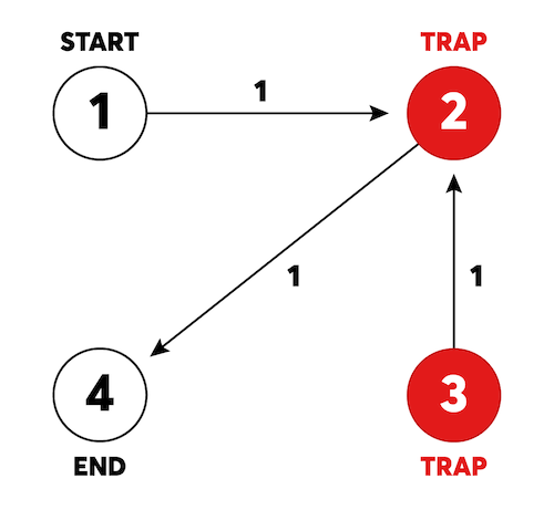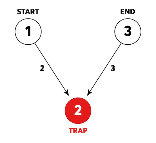 해당 문제는 큰 틀에서는 다익스트라로 start에서 end까지의 최단 경로를 찾아나가지만 trap이라는 제한 조건이 추가된 문제다.