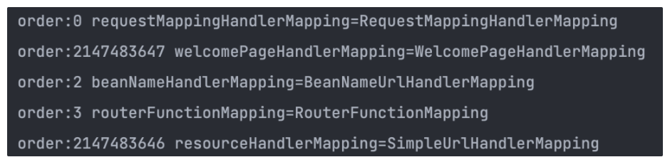 RequestMappingHandlerMapping > BeanNameUrlHandlerMapping > RouterFunctionMapping > WelcomPageHandlerMapping > SimpleUrlHandlerMapping 순서로 우선순위가 잡혀있는 걸 확인했다.