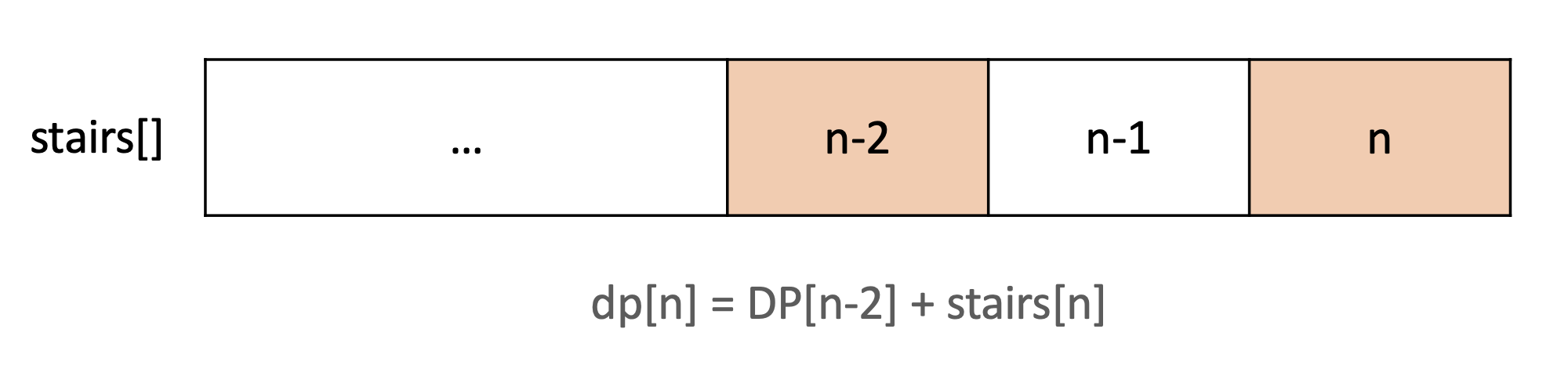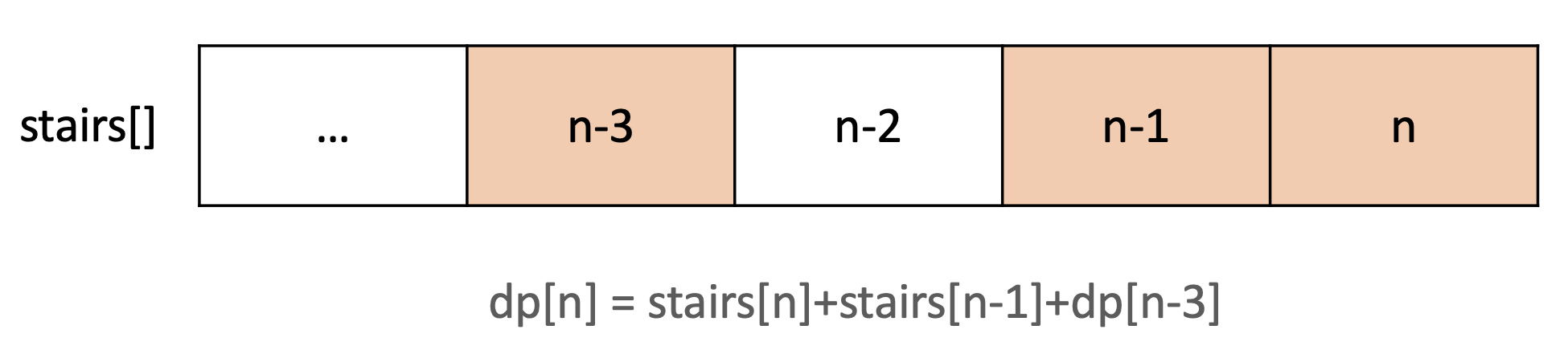 dp[i] = Math.max(dp[i - 3] + stairs[i] + stairs[i - 1], dp[i - 2] + stairs[i]);