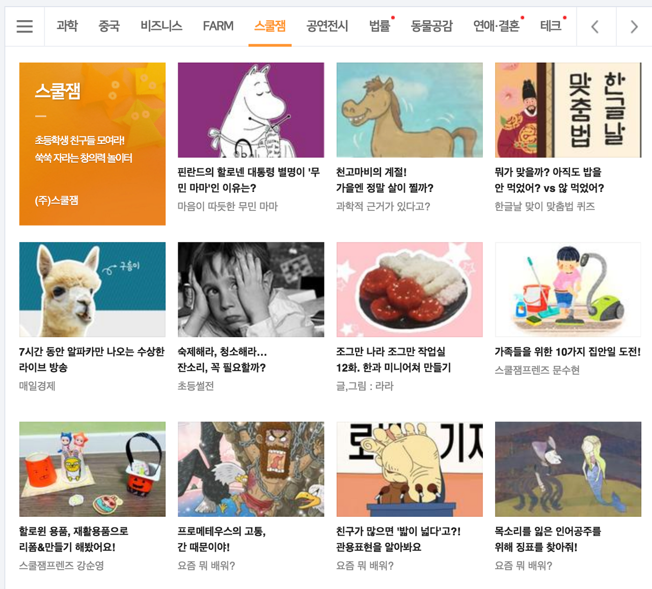 상단에 탭을 누를 때마다 컨텐츠가 달라진다.
