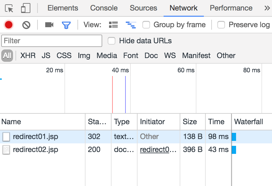 하지만 응답된 결과는 http://localhost:8080/redirect02.jsp이다.