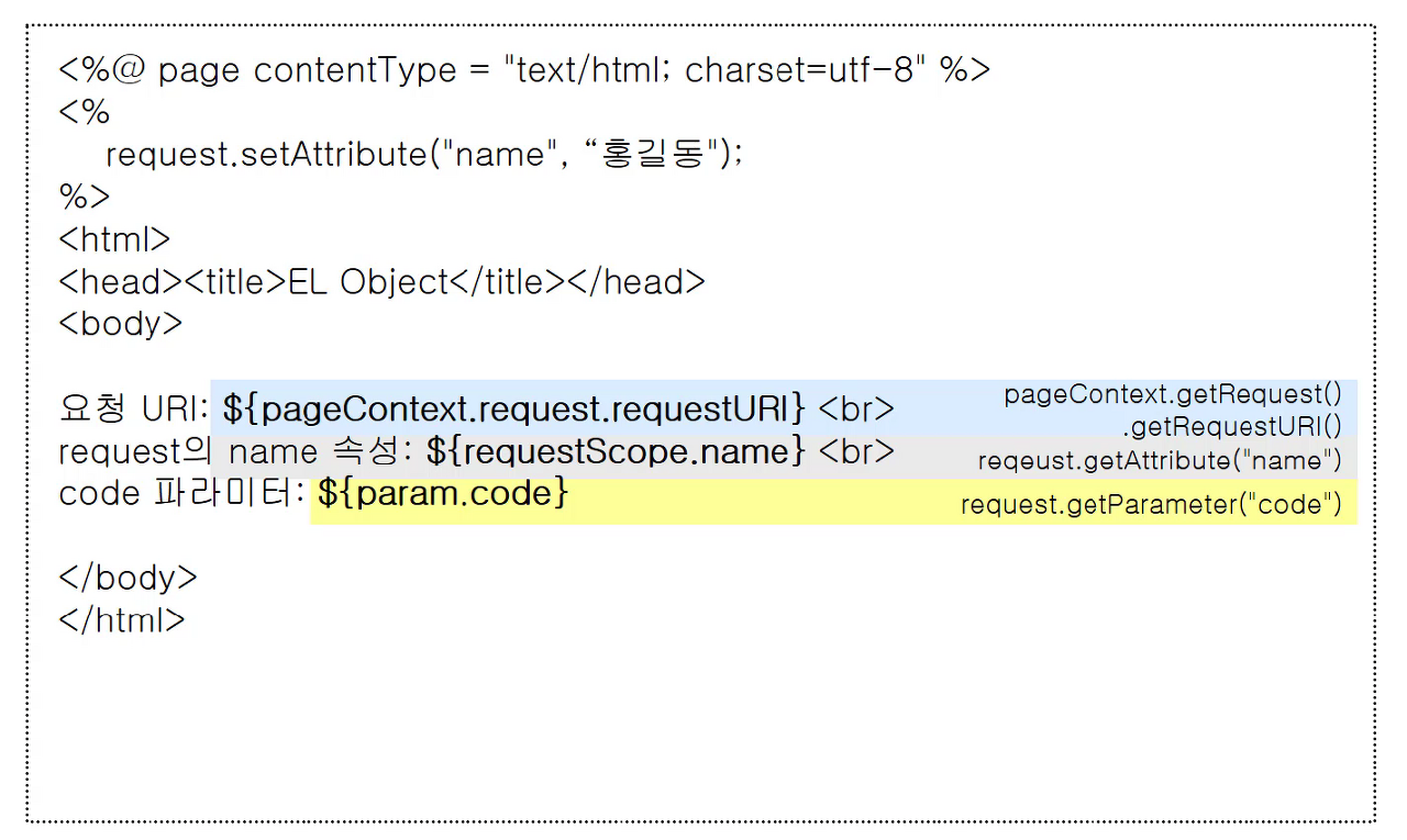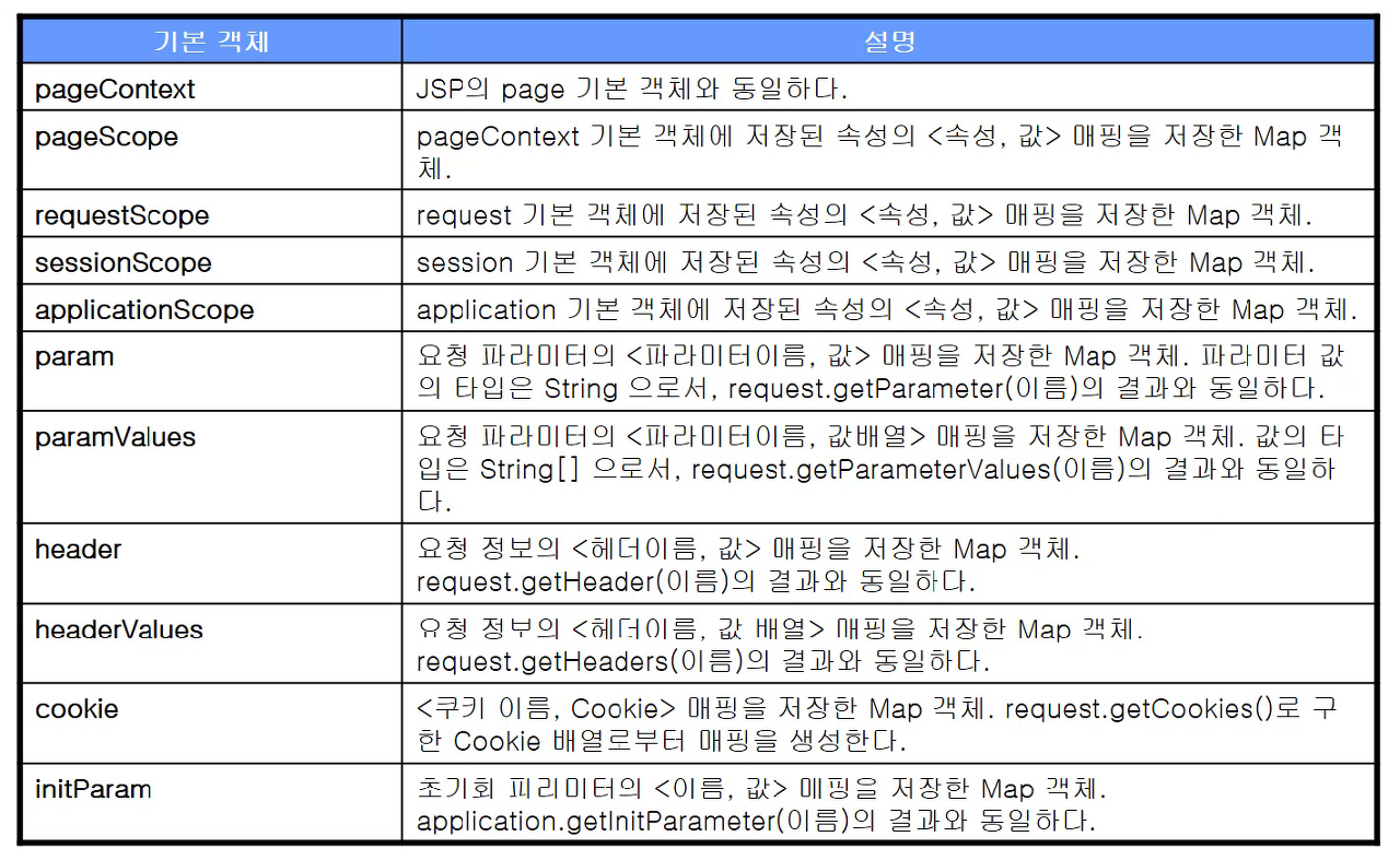 - 표현언어만의 기본 객체 제공