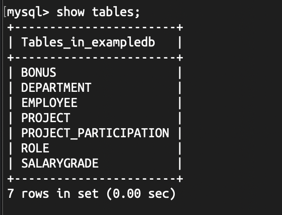 비어있던 테이블 목록에 examples.sql의 테이블이 복사된 것을 확인할 수 있었다.